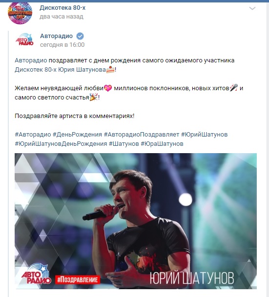 Наш Юра очень популярен и любим!Все,все о нем помнят и пишут тёплые поздравления и пожелания!Все под постами радиостанций так и писали Юре поздравления!))
