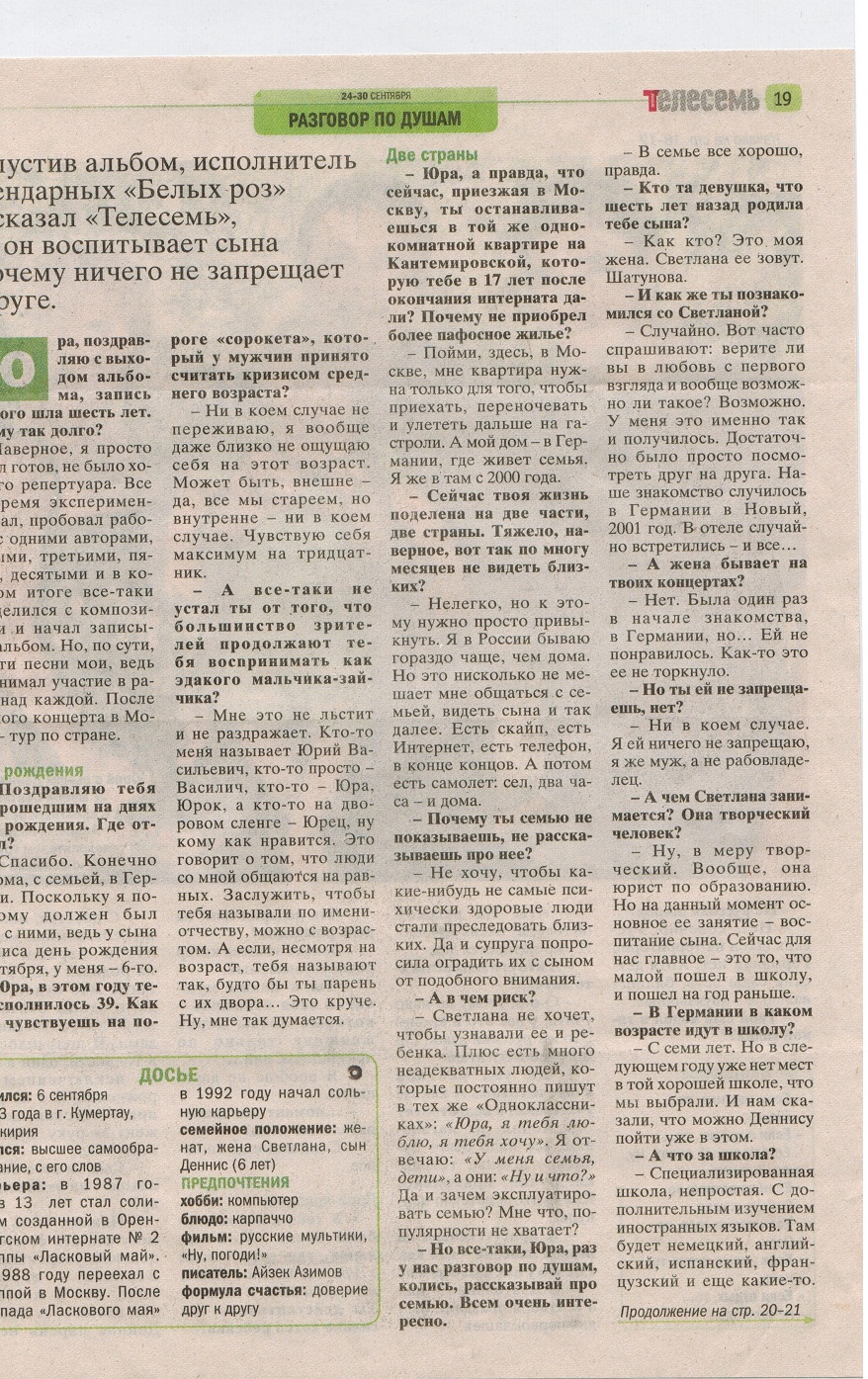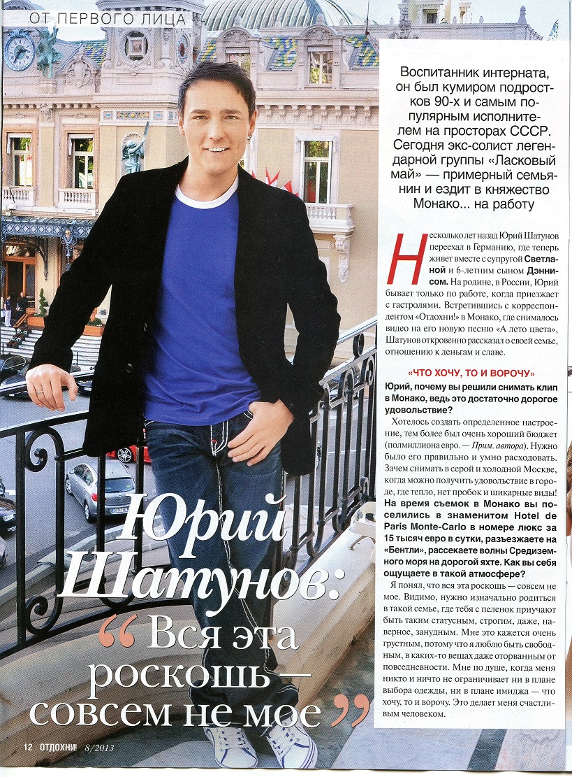 Legenda писал(а):19 февраля 2013 года №8 в Украине вышел очередной выпуск журнала "Отдохни" на страницах которого было напечатано большое интервью с Юрием Шатуновым.