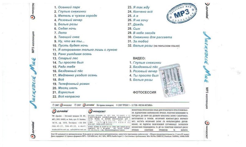 И мне повезло - там этот журнал ещё был! Пройдясь по магазину, я почему-то остановилась около дисков (как оказалось, не зря меня туда магнитик притянул!) - пересмотрев стопочку дисков, я когда увидела последний - обомлела! :sh_ok: Это был диск "Ласковый май"!!! :zvez_ochki: