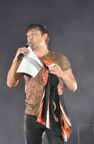Martin писал(а):От Пермских поклонников - мы подарили Юре хоккейную форму нашей Пермской команды "Молот - Прикамье" с фамилией на спине - "Шатунов", в зале все зааплодировали, а Юра сказал - "Какие хорошие подарки мне тут дарят, надо почаще приезжать" В фойе зала мы повесили растяжку с нашим сайтом и многие фотографировались на её фоне. Еще перед концертом мы раздавали светящиеся браслеты разных цветов, чтоб в зале было красиво, когда погаснет свет!