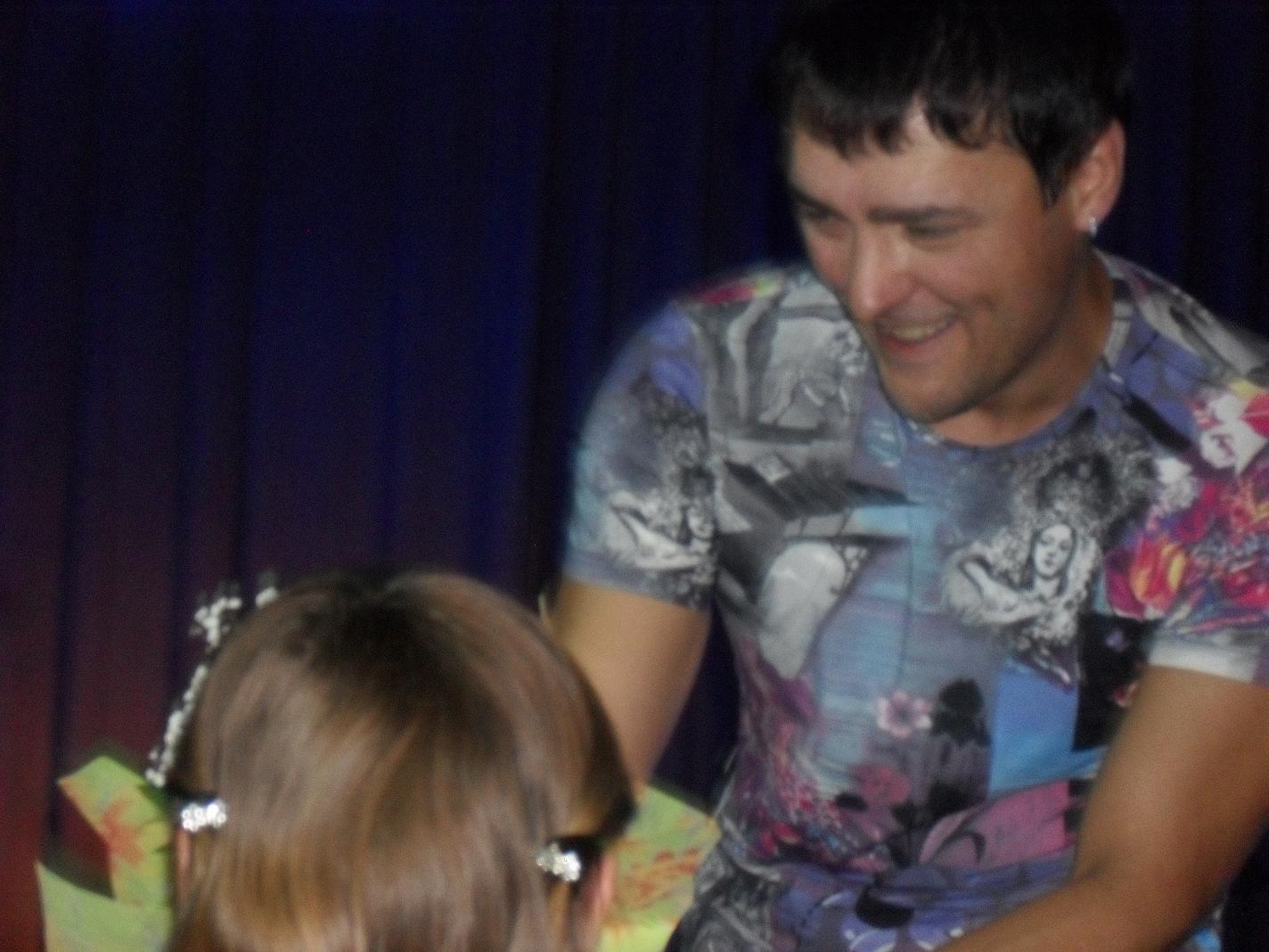 Я вообще обалдела, когда он разрешил его потрогать, записку с этой просьбой писала не я, но на сцену вышла тоже. Непередаваемые ощущения!!!Галактика писал(а):Ух ты, а Юра оказывается позволяет проводить экспертизу на подлинность. )))