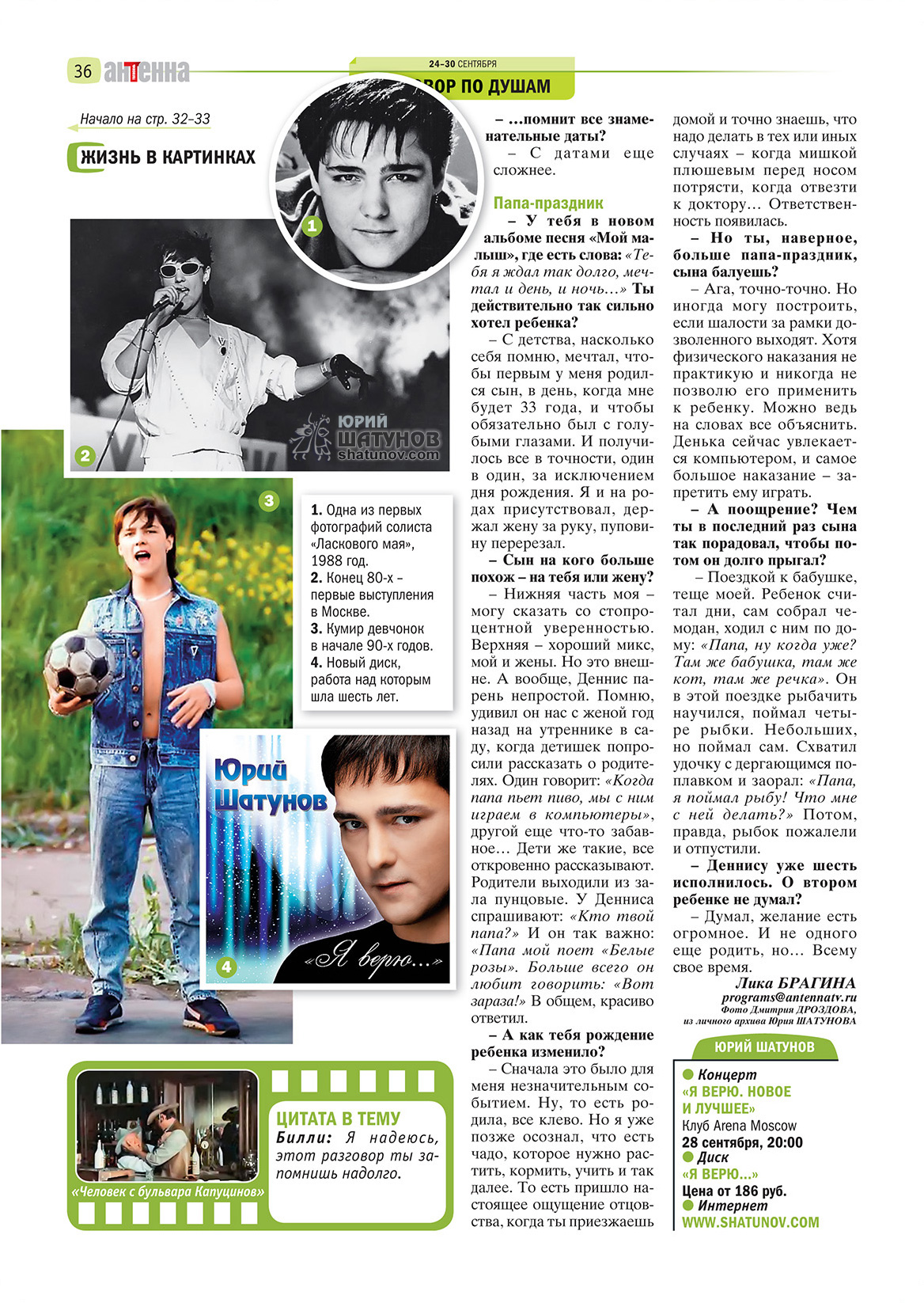 Спасибо Юре за такое доброе и интересное интервью!!! Мне особенно понравилось, как тепло он говорит про сынишку, сразу видно, что он его очень любит. :hea_rt: Счастья тебе, Юрочка!!!! :ki_ss: