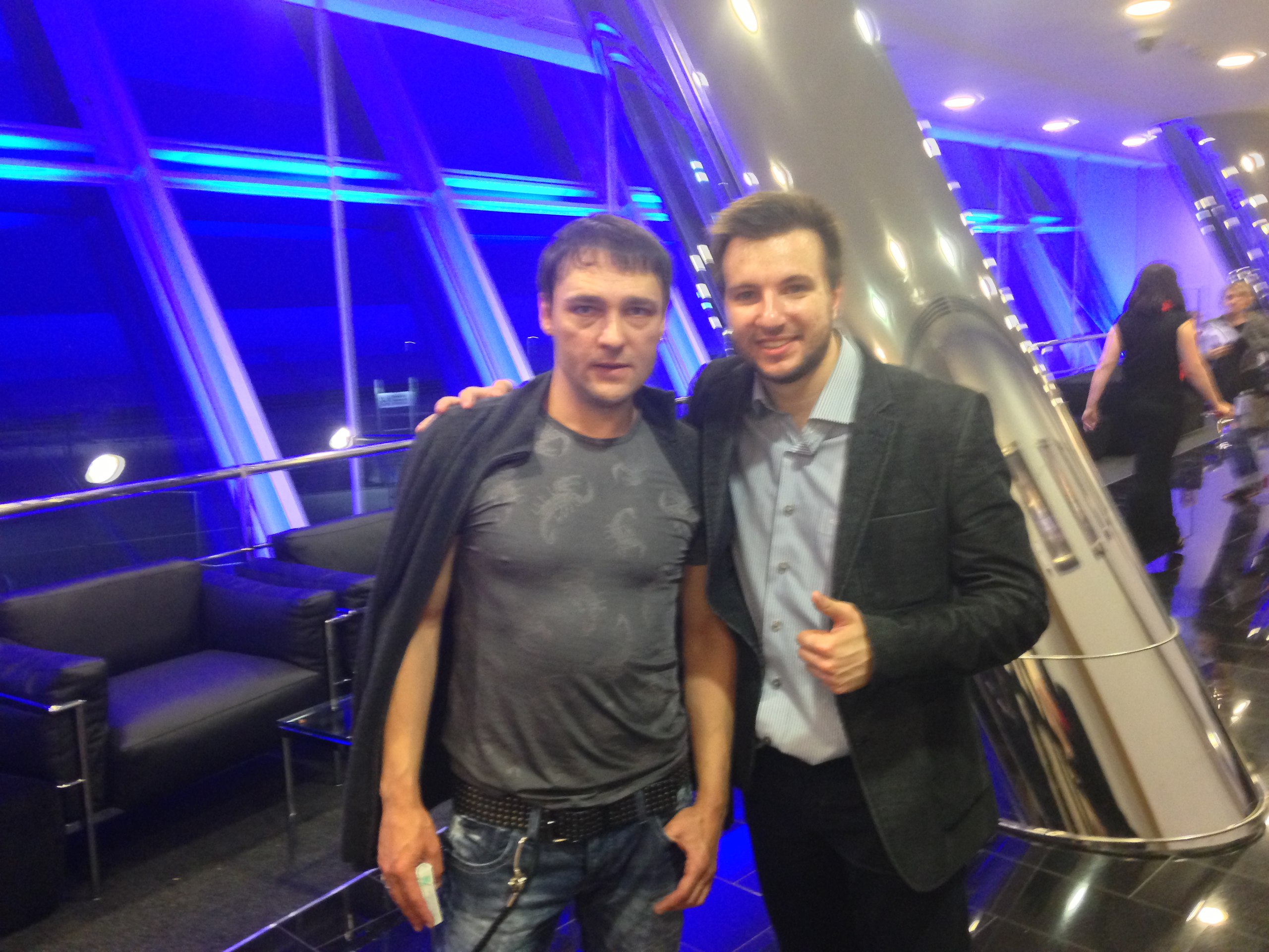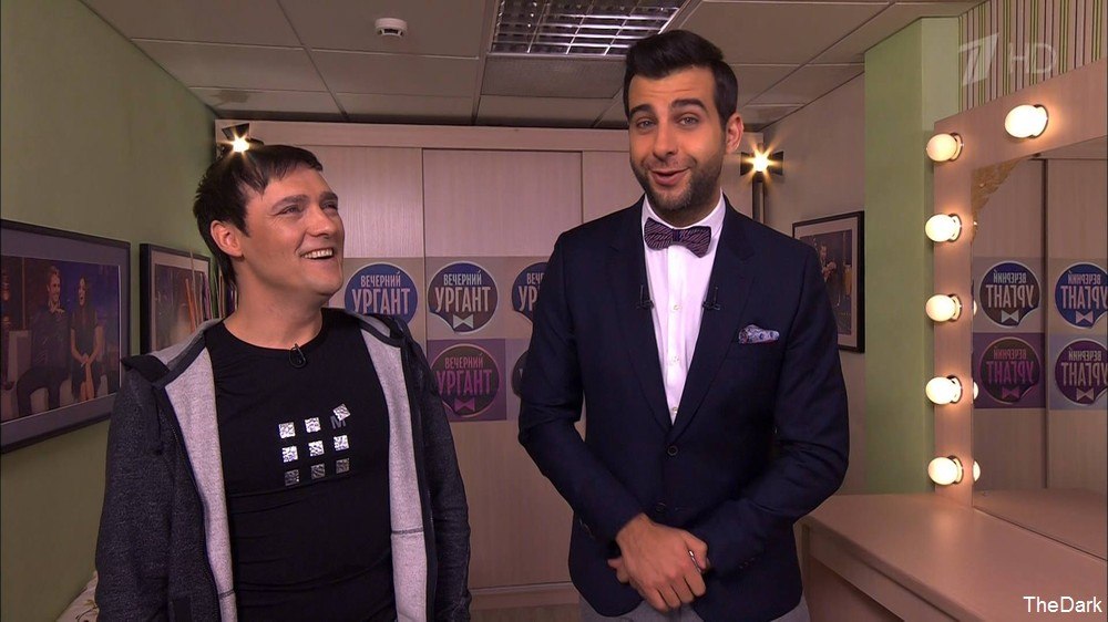 Какие все внимательные, никогда б не обратила внимания.) Эта фотка была в теме концерта в Узбекистане. Юра конечно парень не очень контактный, но всю же вряд ли бедолаге Тахиру после двух совместных концертов пришлось фотошопить совместное фото. А фон...скорее просто за ними стол, на котором лежит либо футболка, либо фото с Юрой в той самой футболке.