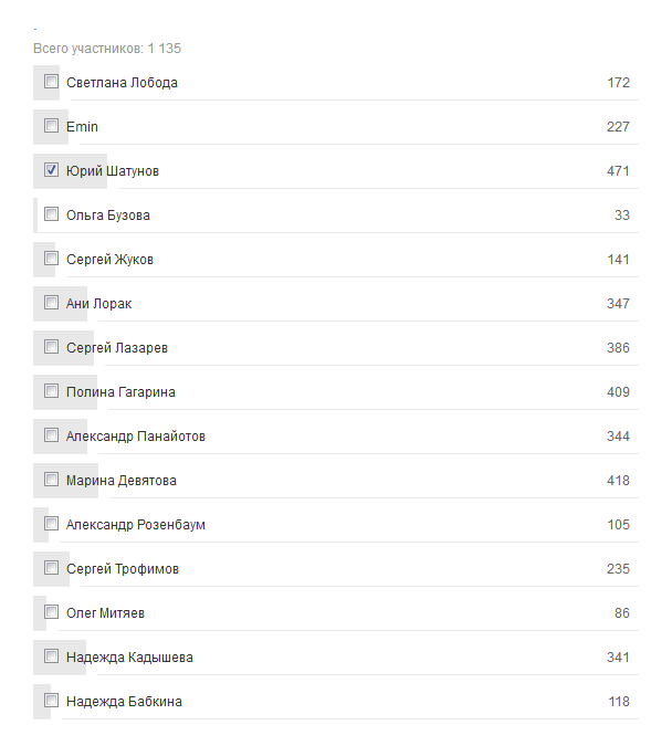 В четвертом списке галочкой выделяем Юрия Шатунова.