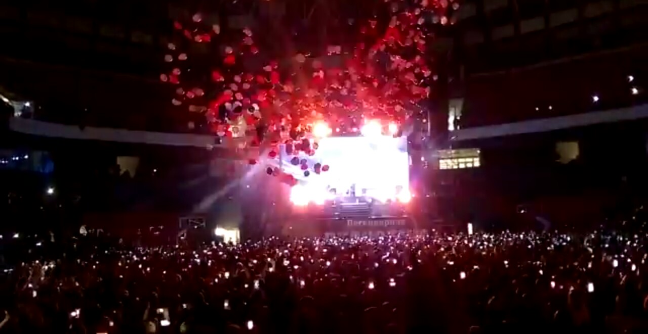 Лиринка, быть может расскажете о своём впечатлении про то,как шарики в зал запустили?Вам понравился этот замечательный ход,придуманный самим Юрой (по словам организатора)?Думаю,что атмосфера в зале вдвойне стала зажигательной,когда шарики стали лететь!)))Тут Юрка поёт и шары начали запускать...Зрелище просто невероятное!)))