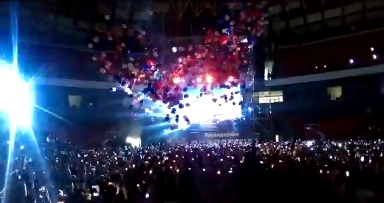 Legenda, вчера на многотысячных зрителей Олимпийского большей частью, как мне показалось, полетели зелёные, а не синие воздушные шары. Видимо, по Москве и Московской области сейчас необычайно возрос спрос на синие, белые и красные шары! Интересно: будут ли в Санкт-Петербурге на ближайшей, 1 декабря, Дискотеке 80-х кружиться над зрителями триколоровские шары (или возможны варианты из других оттенков)?